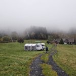 The road is impassable in snow.Longer trains than the ones in the photos could scrape the road when leaving the road.