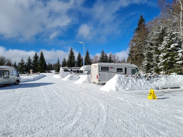 We visited the property in January, excellent snow conditions, about 100 metres to the cross-country ski trail. Easy access. Land perfectly prepared for winter, snow groomed every day, sink available. Friendly and relaxed owner - an added bonus is the excellent restaurant at the property. Impeccable (not only) winter camping.