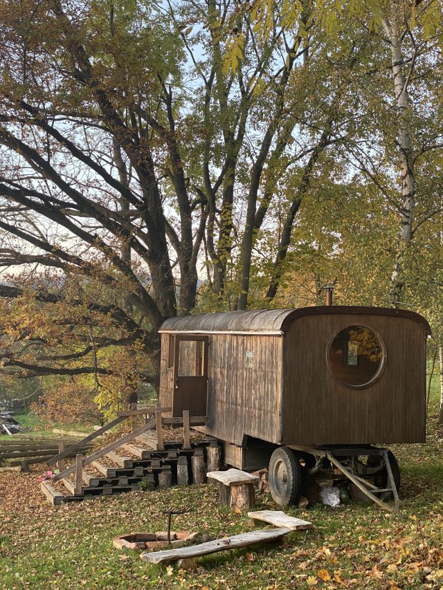 Po předchozí domluvě je možné v listopadu a březnu využít komunitní saunu v lesích nad Řečicí.