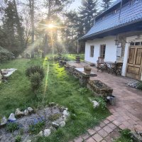We offer for rent a large garden in the Kokořín area. The garden is near a former hunting lodge in a secluded area in the forest, 7 km from Doksy and Bezděz, 10 km from Mšeno, 2 km from the village of Okna (shop, post office, train, bus). The place is suitable for camping for families with small children or larger groups. You can use a covered outdoor kitchen with equipment and electricity connection, sanitary facilities in the house, fireplace, barbecue, outdoor shower and swimming pool, table tennis table and other sports equipment, outdoor sinks with drinking water, several outdoor seating areas. Dogs are welcome. Wifi is available (but weak). Parking is available in the garden. There is an occasional cat on the property, a puppy has a home in the garden.