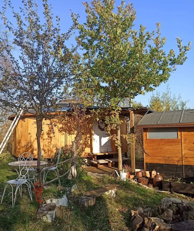 The access road is asphalt, of poorer quality, but passable all year round. Parking is in front of the gate, the place is paved with gravel. Suitable for cars only.