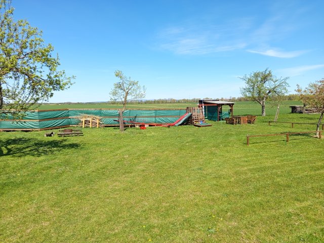 The site is on an unfenced orchard on level ground at the far end of the village.Directly on the pitch at the orchard there are 220V sockets,a tap with drinking water and a hose to refill the tanks,a chemical toilet sink and a shower with hot water.There is also a kitchen covered corner with a sink and hot water,clotheslines with pegs for drying laundry.Children's swings and a sandpit.Access to the property is on asphalt,the land is on level ground.Firewood is prepared free of charge on a marked pile,an axe and a saw is hung on the wall in the kitchen corner.There is a charcoal grill,a roasting fork and I can possibly lend a gas double cooker. There is a metal fireplace for roasting and 3 benches.Beautiful swimming in Metuji,in several places.Suitable place for fishing.Possibly fishing and swimming at the Rozkoš dam/2km/. Connection by quiet roads to the Hradec-Kuks cycle path or the cycle path along the river Upa.Access to the orchard on asphalt road,spacious enough for larger caravans.Bus and train station 2km. Grocery Nahořany and Černčice 2 km away,open daily 7-16 hours.Every Friday open pub at Mlynář/1km/ beer,limo.In Nahořany municipal inn open daily,including hot meals and ice cream on tap/2km/. Slavětín pub,open Friday Saturday and Sunday,including hot meals. In the vicinity of Babiččino valley,Eagle mountains,Dvůr Králové zoo,Kuks,Poland spa.Possibility to rent a boat in Nové Město and come along the Metuji river directly to the property. In case of stranding on the , tractor available.Careful when using GOOGLE navigation,leads to the place on nonsensical dirt roads.Access to the village is always only on asphalt road!! Staying on the land is at your own risk and I am not responsible for any damage to property and health.I allow only small dogs of "couch" breeds on the land on the set