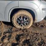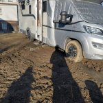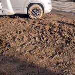 Celá návštěva začala příjezdem večer cca po 22 hodině. Při vjezdu na pozemek došlo vpodstatě ihned k zapadnutí. Na pozemku byla jen botou zašlapána příčná hluboká kolej, kde už zjevně někdo zapadl, která nebyla vidět. Přední náprava uvízla a nešlo vyjet. Takže jsem šel spát a celou noc přemýšlel jestli ráno nějak vyjedu. V noci sice mrzlo, ale pozemek byl tak rozježděný, že to nestačilo a vyjet prostě nešlo. Šel jsem tedy lyžovat s tím, že pořád přemýšlíte jak 4 tunové auto vyprostit. Po lyžování jsem zašel za panem majitelem jestli mi půjčí lopatu, rýč, krumpáč. Pan majitel mi ještě vynadal, že jsem měl naznačen vjezd po 3 ks pásků nějakých zbytků lehčené pryže. To jsem teda nepochopil, přišlo mi to tak na překročení nohou.
