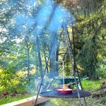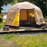 Krásný a prostorný stan s pohodlnými matracemi, kompletně připravený pro kontrétní počet osob, uvnitř se nachází chemické wc, co se týká jídla, může vám majitelka připravit snídaňový koš a nebo máte uvnitř stanu bedýnku se sladkostmi či slané občerstvení, nealko je připraveno pod přístřeškem, stejně jako barel pitné vody, posezení společně s kompletním nádobím, kolem teče řeka Orlice, v které se pro nás od majitelky chladila basa piv a nealka, ihned u stanu se nachází ohniště s velkým grilem, posezení u ohniště pro nás bylo méně pohodlné díky nízkému posedu, ale po několika pivech vám to už ani nepřijde, ihned vedle vede vůbec nepoužívaná silnice a okolní chatky, z které vás navštíví maximálně micka, byl tu opravdu svatý klid, vše bylo naprosto čisté a připravené, super komunikace, určitě zde nejsme naposledy. PS. i motorkáři jsou vítáni 🙂