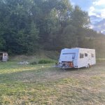 Pozemek je rozlehlý a na pěkném místě.S velkým těžkým přívěsem jsme se na něj však nedostali.Některá místa na příjezdové cestě byla promáčená a bahnitá,takže na jednom z nich jsme zapadli a dál se nerozjeli.Po chvíli manipulace jsme se nakonec vyhrabali a pozemek museli opustit. Přesto však velký dík patří hostitelům a také všech pět srdíček,a to za alternativní možnost parkovat a přenocovat na jiném místě a ještě za plotem na uzavřené zahradě.Místo jako takové je krásné,ale pro větší a těžké přívěsy složitě dostupné, obzvlášť pokud zaprší. Obytná auta a osobní auta by neměla mít s dojezdem na louku problém.Pro milovníky přírody a kempování na samotě u lesa vřele doporučuji.Taktéž chválím hostitele,domluva s nimi perfektní. Děkujeme