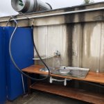 Sprchy, kde sme zaparkovali sú bez strechy a teplej vody. Hneď vedľa je umývadlo,ktoré tiež zastrešené nie je a tečie studena voda. Aby toho nebolo malo, bolo nam povedané, ze voda nie je pitná.