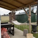 Krásný pozemek . Majitel se o něj opravdu stará . Dřevěná terasa s posezením a grilem . Skvělé ohniště . Pilka a sekera k zapůjčení . Klestí na podpal jsem nasbírala mezi stromy a dřevo bylo nachystáno pod plachtou .