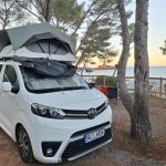 Toyota Proace s vestavbou na spaní, střešním stanem a markýzou